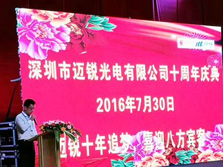 2016年7月30日,深圳市星空电竞光电有限公司(以下简称星空电竞光电)内外鲜花灿漫、彩旗招展、气球高悬,迎来了公司十周年华诞。为了感谢新老客户的支持,在惠州皇冠假日酒店举行了一场庆典活动,公司全体领导、客户与合作伙伴齐聚一堂,共赴繁花似锦的十年之约。