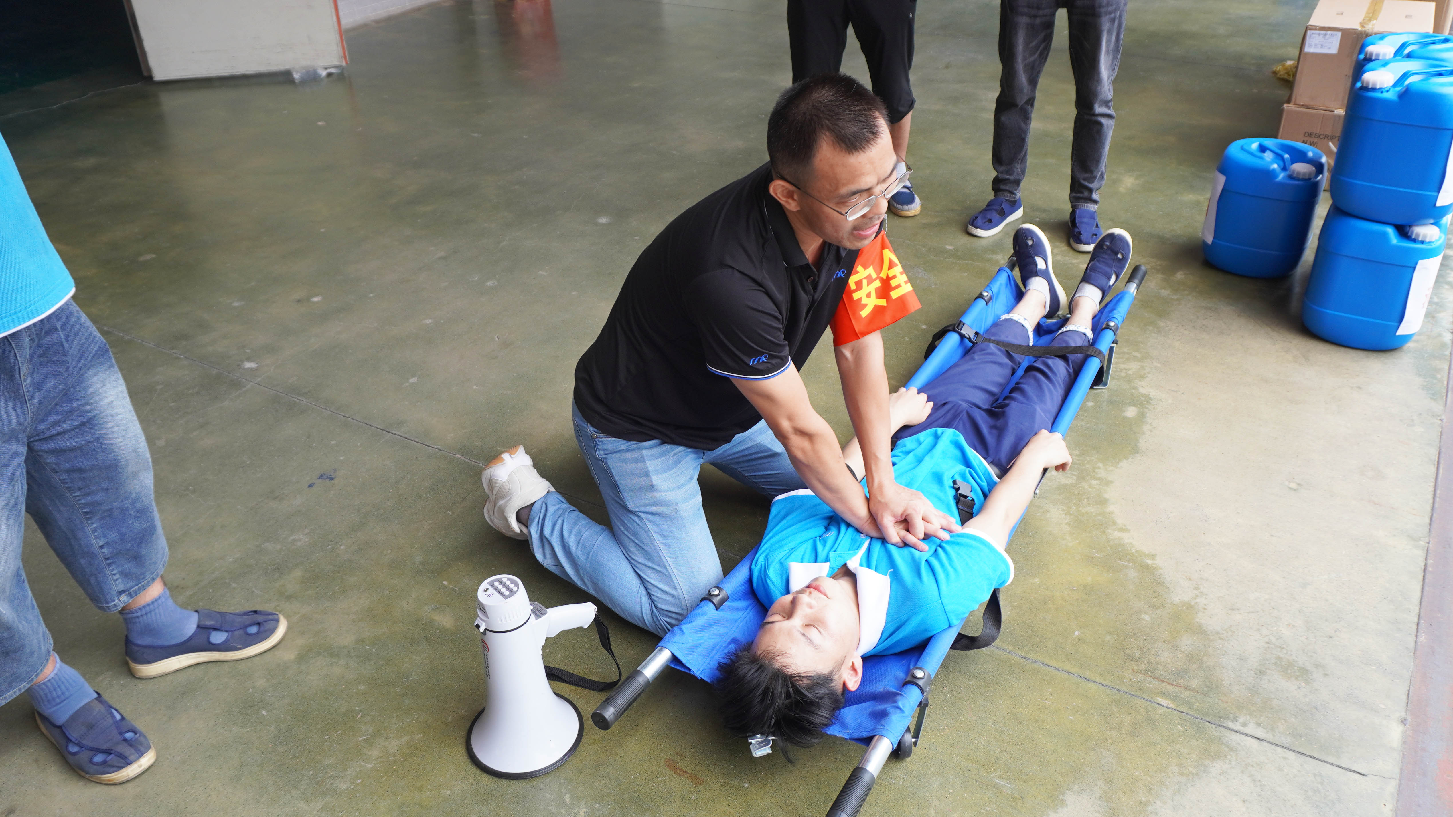 在伤员搜救环节,救援小组行动迅捷,利用担架成功转移“伤员”并实施心肺复苏,生动检验了公司在紧急状态下的救援反应能力与生命守护链条。